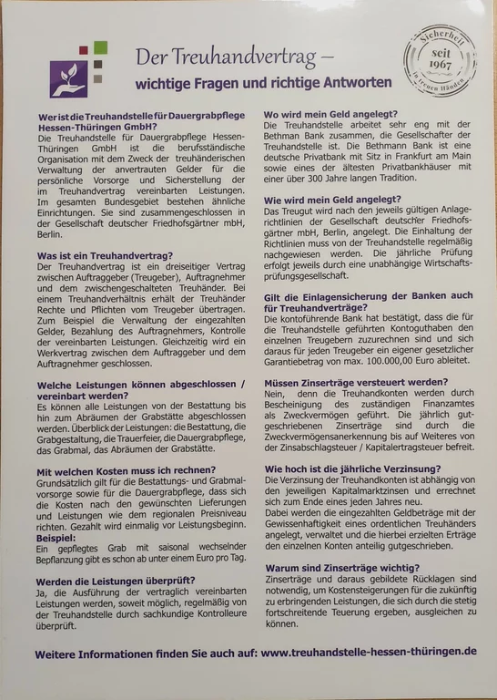 Genau das macht ein Bestattungsvorsorgevertrag